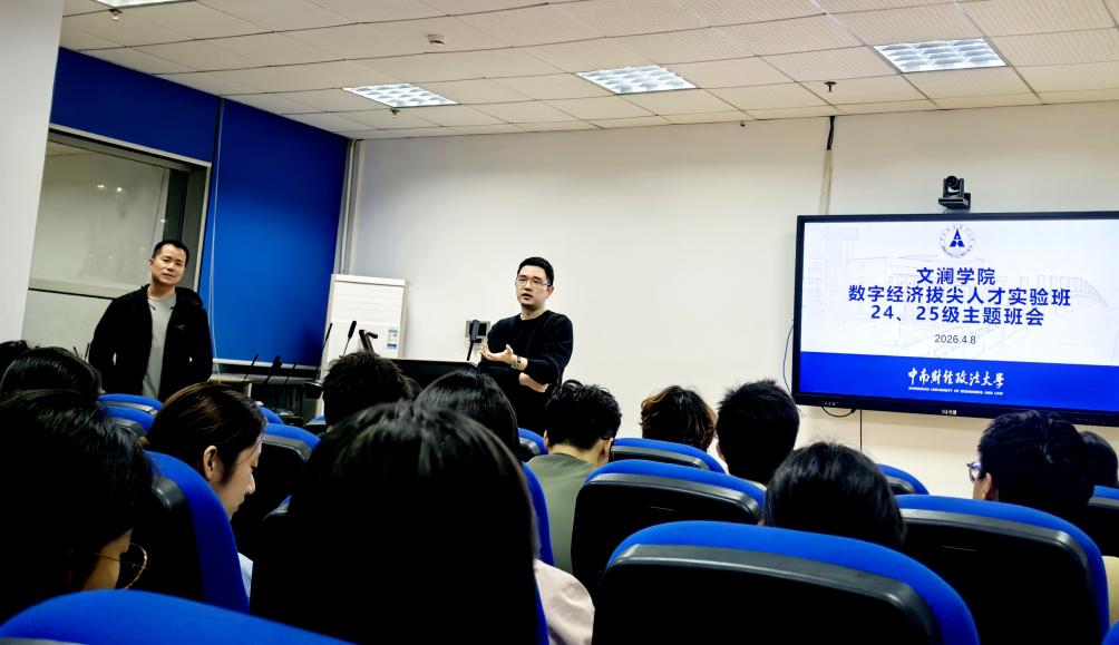 (通讯员 王玉鹏 武淑钰 周思琪)为深入落实立德树人根本任务,引导学生树立正确学习观,强化拔尖人才培养质量,4月8日晚,亚洲色情 在文澴楼809教室召开数字经济(拔尖人才实验班)24、25级主题班会。班会旨在引导同学们端正学习态度,提升人工智能工具在学习科研中的应用能力,进一步明确学业发展方向与保研要求。班会由李程老师和曾辰航老师共同主持,特邀杨子超老师作“如何利用人工智能做科研”专题分享会。